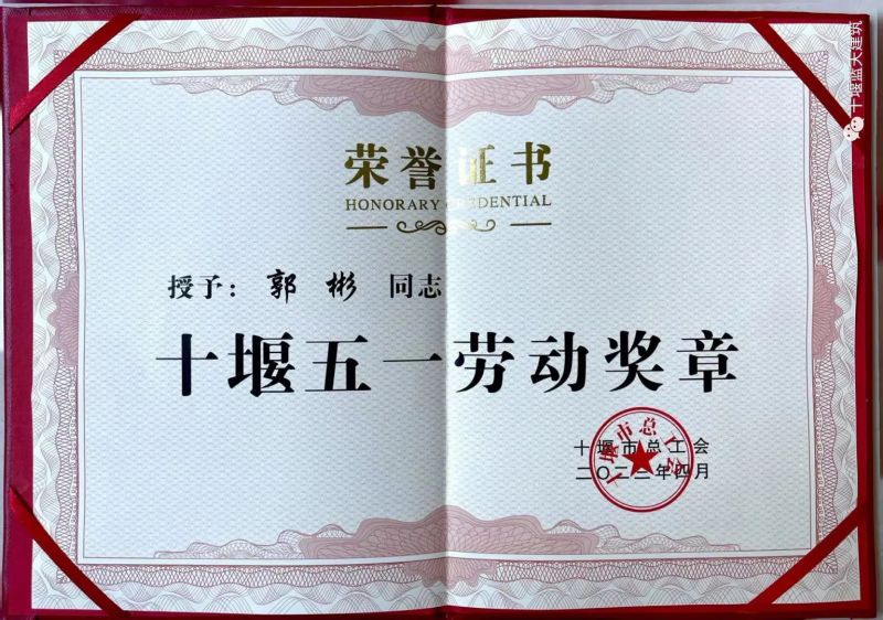 熱烈慶祝藍天建筑董事長郭彬榮獲"十堰市五一勞動獎章"
